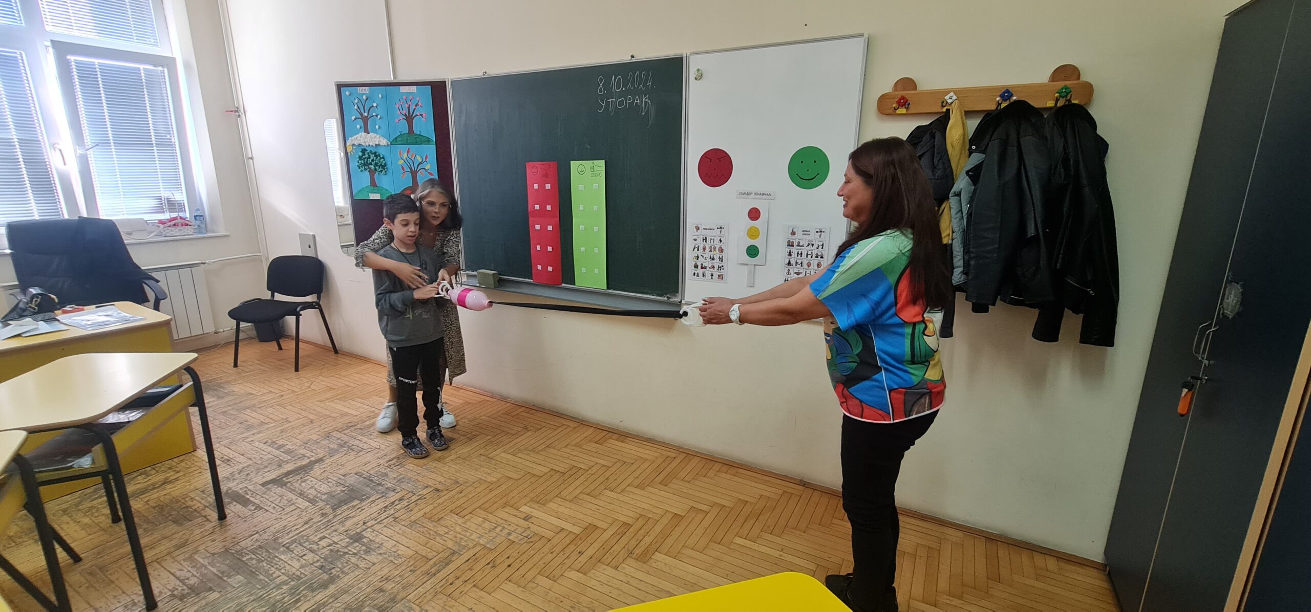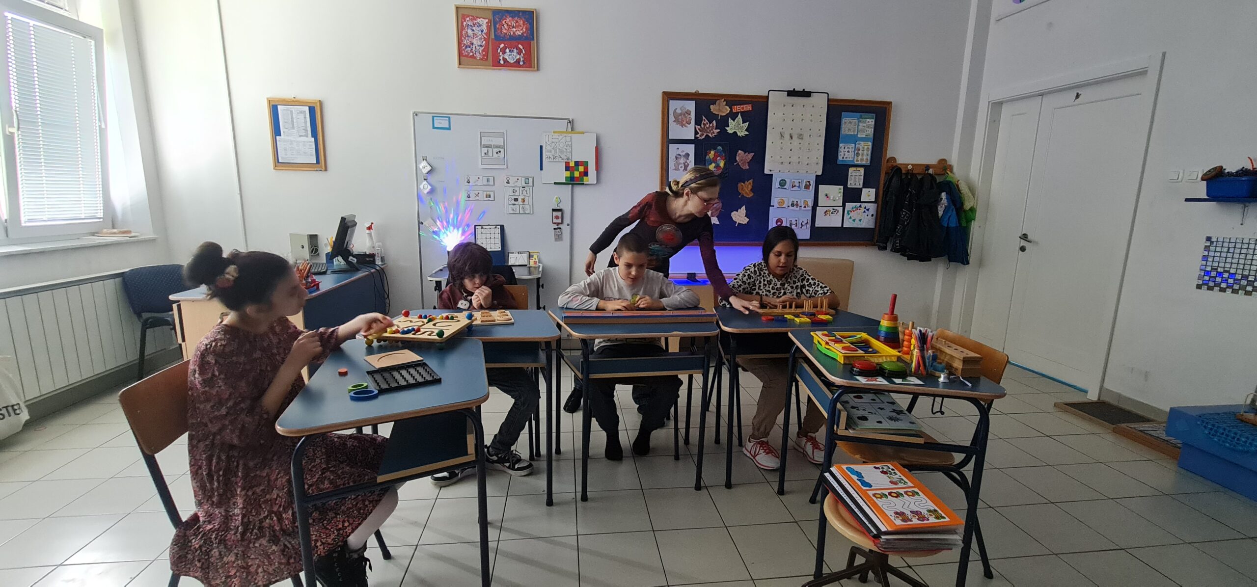 У току протекле недеље, имали смо прилику да угостимо четворо колега из Центра „Ирис“- центар за едукацију, рехабилитацију, инклузију и саветовање слепих и слабовидих особа, из Љубљање. Реализовано је посматрање на радном месту у оквиру њиховог Еразмус+ КА122 пројекта: „Together for All“. Циљ посете је био да се упознају са нашим начином рада, као и применом различитих наставних средстава и опреме у наставном процесу, а посебно у раду са ученицима са ПСА. У току посете, обишли су 15 часова, који су обухватили групне и индивидуалне активности. Такође, представили смо им наш Еразмус+ КА122 пројекат: „Музика-покрет-ЗНАМ“ у виду презентације, начин примене пројектних резултата, како се музика може користити за опуштање и стимулацију, уз терапијски и едукативни утицај. Присуствовали су неким часовима на којима су видели директну примену пројектних активности.