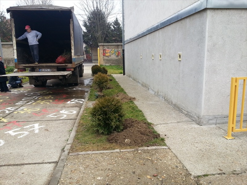 Од срца се захваљујемо запосленима у фондацији „Драгица Николић“, као и Првој дами Србије са великом хуманом и племенитом душом, пеј. архитекти Нади Зеремски, радницима који су садили дрвеће, расадницима код којих смо набавили саднице, домару школе и свима који су допринели на уређењу дворишта.