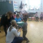 Дружење деце протекло је у веселом расположењу, уз послужење и плес, а деца из вртића представила су се и пригодним рецитацијама. Том приликом, деца су уручила два пакетића слаткиша ученицима наше школе, као и поклон у виду Новогодишњих честитки које су сами израдили.