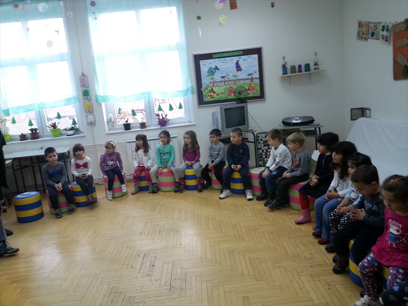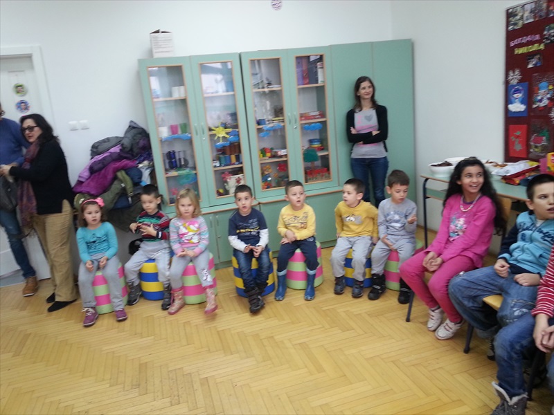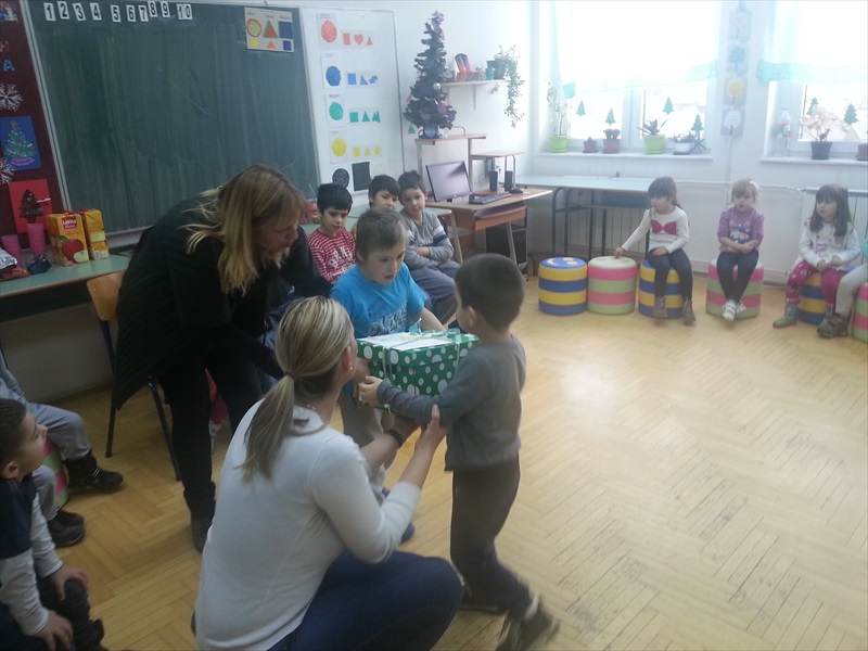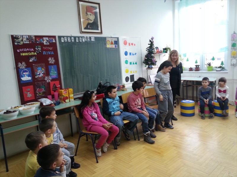Дружење деце протекло је у веселом расположењу, уз послужење и плес, а деца из вртића представила су се и пригодним рецитацијама. Том приликом, деца су уручила два пакетића слаткиша ученицима наше школе, као и поклон у виду Новогодишњих честитки које су сами израдили.