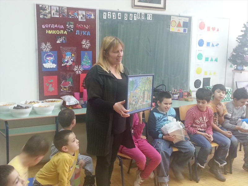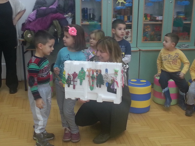 За узврат, ђаци наше школе поклонили су деци Новогодишње украсе које су сами правили, а објекту „Камичак“, у знак успешне сарадње и лепог дружења-слику, такође групни рад ученика наше школе.