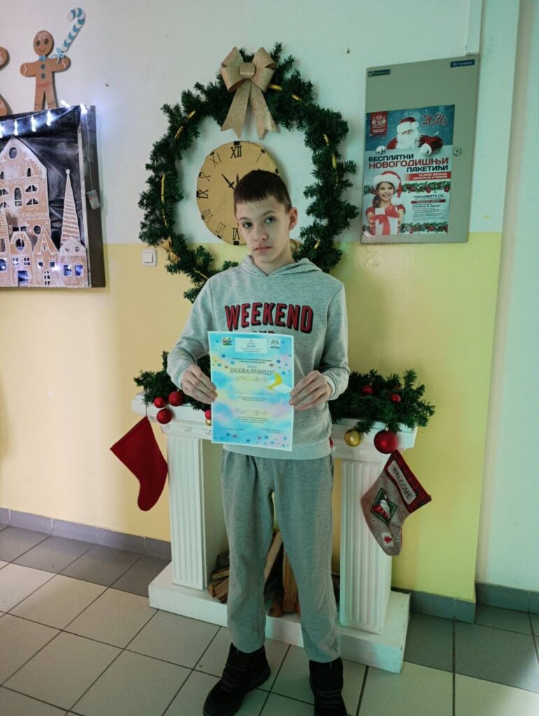 Дана 3.12.2025 године удружење за помoћ МНРО Лесковац и Дневни боравак ДУГА доделили cy захвалнице нашој школи и ученицима који cy учествовали на ликовном конкурсу „Meђy јавом и мeђ сном“. Похваљени cy ученици: Урош Агатоновић, Марина Петровић, Сара Кадријевић, Јован
