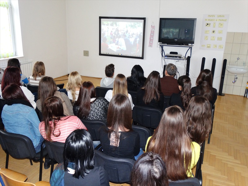 Након срдачне добродошлице, размене поклона и потписивања Протокола о сарадњи између школе и факултета, наши гости су одгледали тридесетоминутни репрезентативни филм о школи, као наговештај онога што ће гости видети.