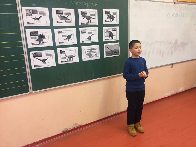 Четвртак, 14.11.2019. године био је резервисан за обележавање Међународног дана толеранције код наших другара из ОШ “Соња Маринковић“. Заједно са другарима из ОШ “Радивој Поповић, наши ученици из старијих разреда подсетили су се шта је то толеранција и како да је применимо у свакодневном животу. Такође нас је друг Лука упознао са занимљивостима о диносаурусима и времену у којем су они постојали. Уз дружење и цртање омиљеног диносауруса, време нам је брзо прошло. Другари, било нам је дивно са вама и надамо се поновном сусрету.