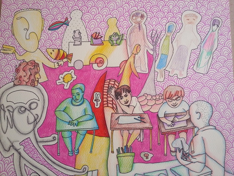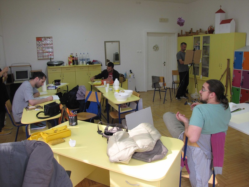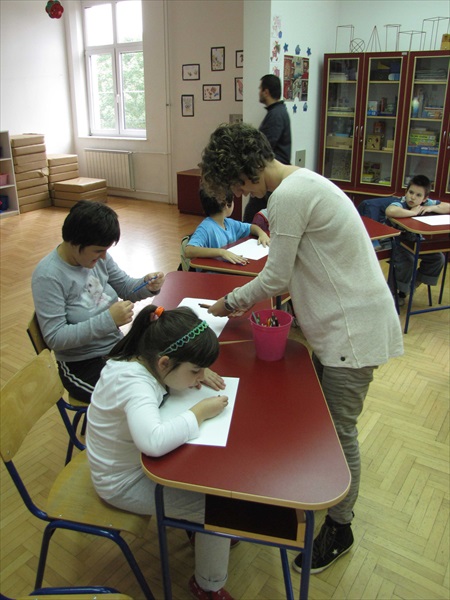 Од понедељка до петка ученици су цртали ликовном техником и темом по слободном избору и изражавали своја осећања и умеће у покретима, слагању боја итд. Ученици са наставницима радили су у три групе: