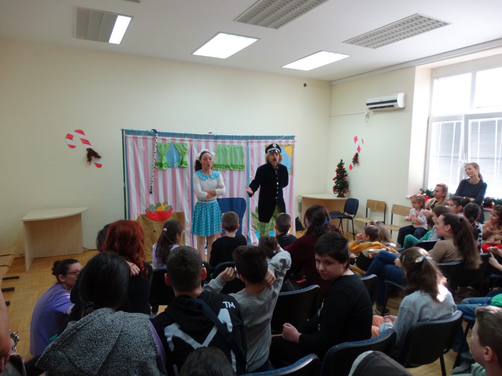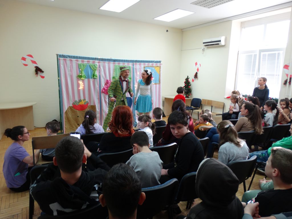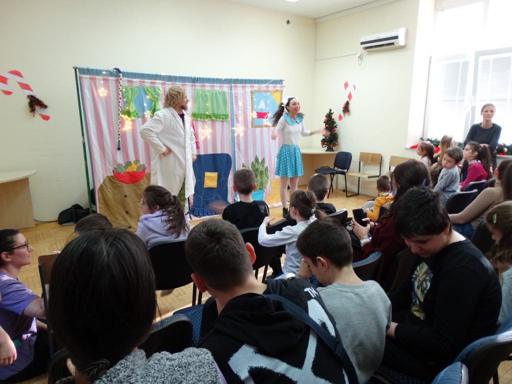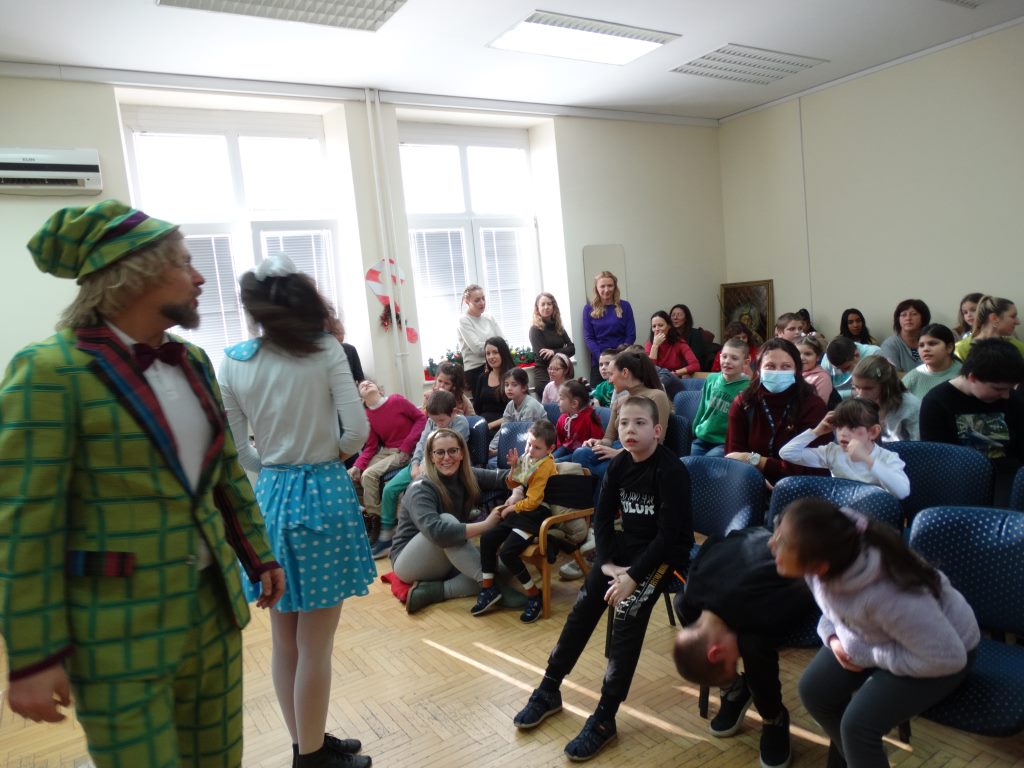 Децу је изненадила предивна глумачка екипа позоришта „Максимус арт театар“ која је извела необичну и веома узбудљиву Новогодишњу представу и тако унела прави празнични дух у школу.