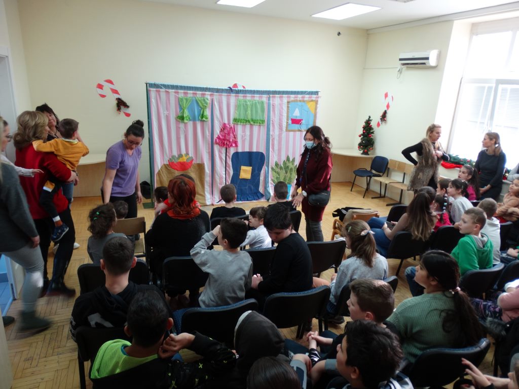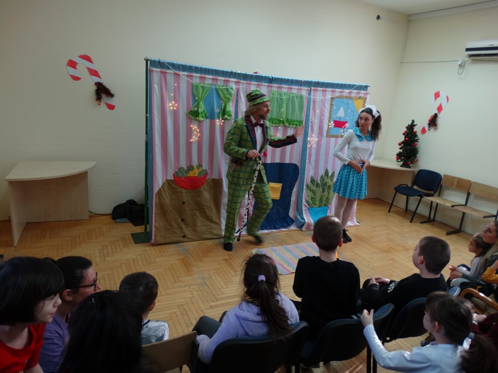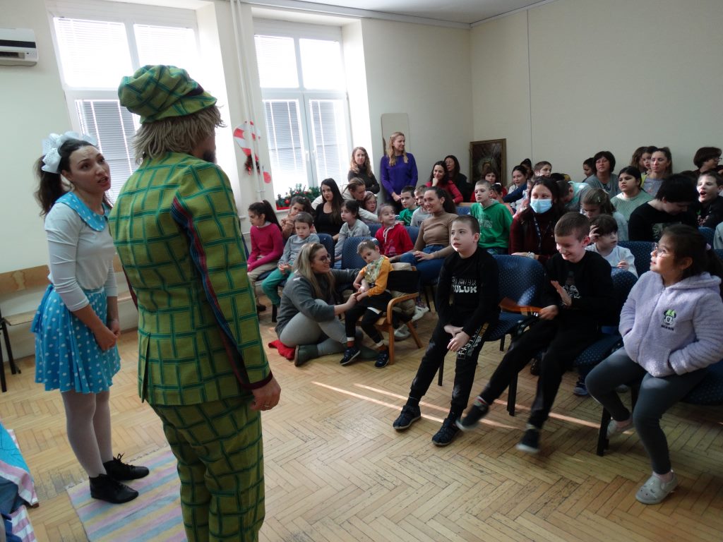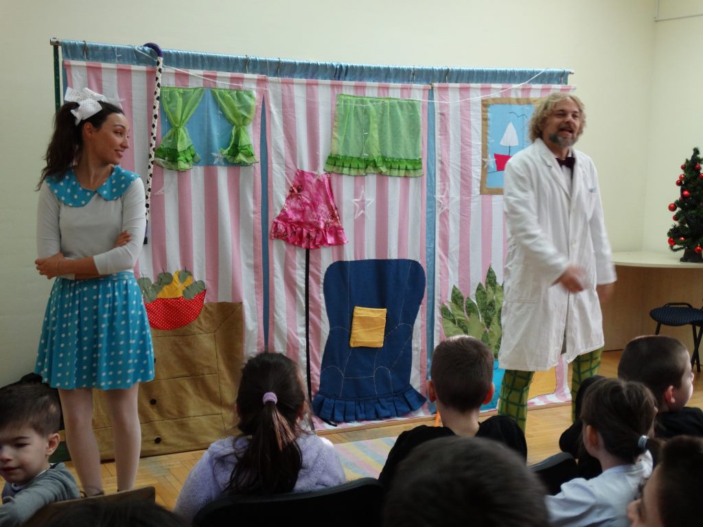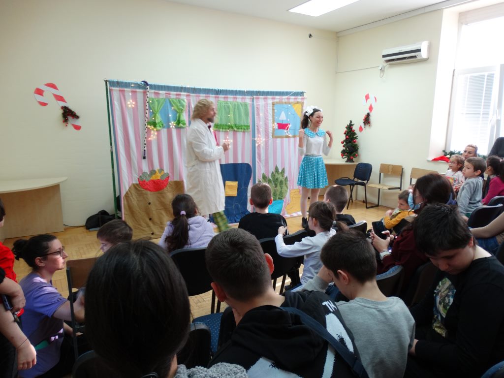 Децу је изненадила предивна глумачка екипа позоришта „Максимус арт театар“ која је извела необичну и веома узбудљиву Новогодишњу представу и тако унела прави празнични дух у школу.