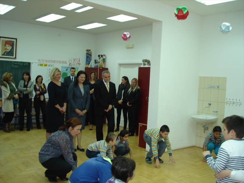 У току обиласка, у једној од учионица, ученици су са наставницима извели пригодну приредбу, сачињену од краћих рецитала и ритмичких тачака.