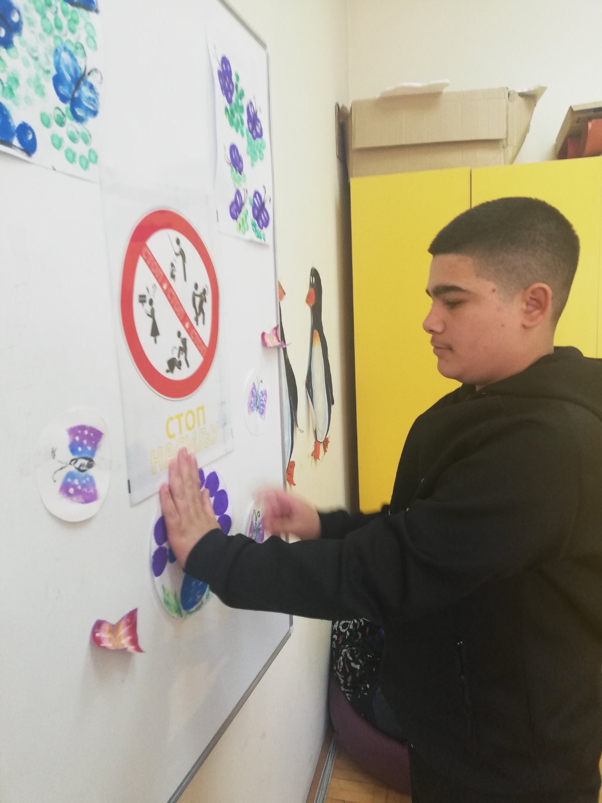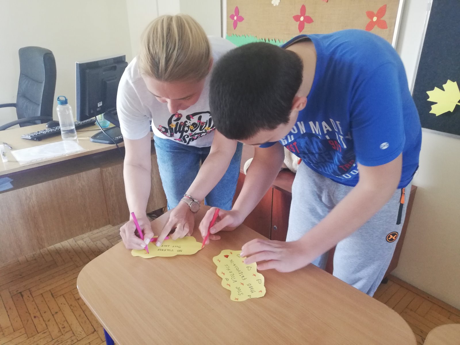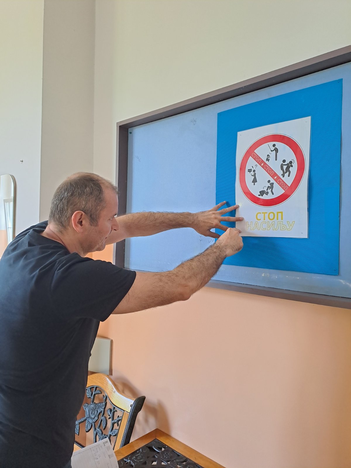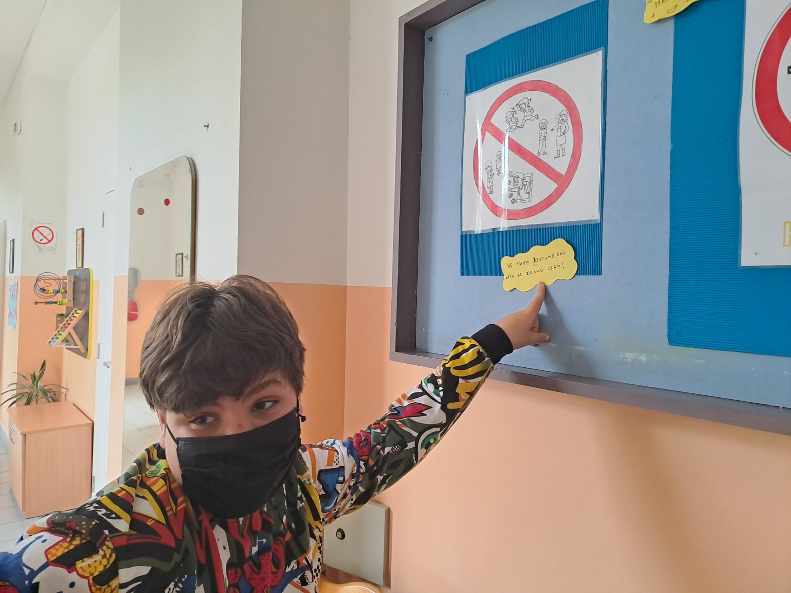 На радионици је урађено постер СТОП НАСИЉУ који је подељен свим разредима, ППГ, развојна група и индивидуалним наставницима. За пано су направљени постери на задату тему и израђене су поруке против насиља, све је представљено на паноу.