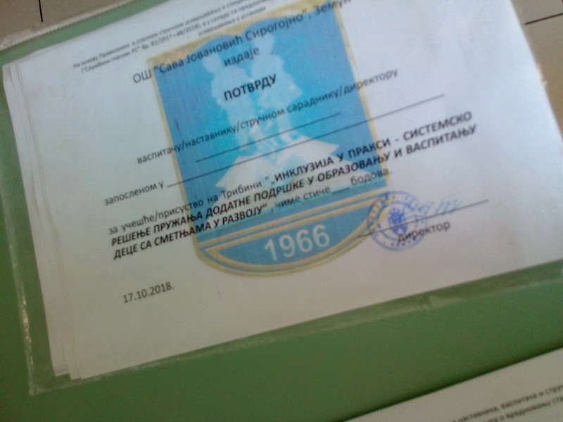 Директор Салим Горанац присутнима је објаснио нови Правилник о пружању додатне подршке ученицима са сметњама у развоју који похађају редовне школе. Након тога уследила је дискусија, а потом и филм „Једнаки“ сниман у сарадњи ОШ „Сава Јовановић Сирогојно“ и средње школе ИТХС.